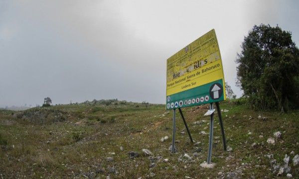 Es tan ilusorio que el letrero despintado de «Bienvenidos al Parque Nacional Sierra de Bahoruco» que debería marcar el límite del parque, está un kilómetro y medio parque adentro.
