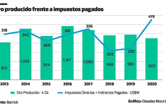 “Nosotros venimos de tener una producción de casi 1.2 millones de onza (de oro), pero el año pasado fue casi 900 y por año se reduce casi un 7 %, y si nosotros no hacemos nada producto de la reducción de la ley, para el año que viene estaríamos a la mitad”, comenta. La ejecutiva de Barrick estima que podrían pasar a tener un promedio de 550 mil onzas, cuando en un año estuvieron cerca de 1.5 millones.
