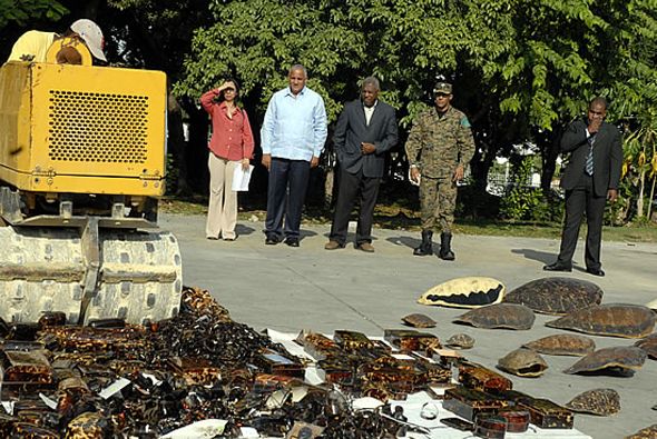 La Secretaría de Medio Ambiente y Recursos Naturales (SEMARENA) destruyó 3,272 objetos fabricados con conchas de tortuga carey (Eretmochelys imbricata), los cuales habían sido decomisados en operativos realizados en 121 establecimientos, incluyendo joyerías, hoteles, plazas comerciales y gift shops de Santo Domingo, Juan Dolio y Bávaro.