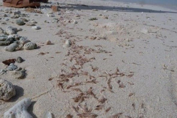 El Ministerio de Medio Ambiente y Recursos investiga la causa que habría causado las muertes de una considerable cantidad de larvas de langostas aparecidas durante los días viernes y sábado en las gostas de Cabo Rojo, provincia Pedernales.