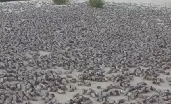 El Ministerio de Medio Ambiente informó este domingo que miles de cangrejos ermitaños, por exigencias de la reproducción, se desplazaron al mar para reunirse, formando una gran migración.