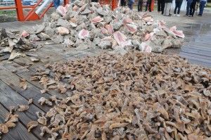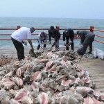 Explicó que dentro de la variedad incautada y lanzada al mar se encontraban 12 sacos de masa de lambí de la especie strombus gigas disecado, con un peso total de 540 libras, y 97 cajas de conchas de ese mismo producto, cada caja con un peso variado de entre 40 y 50 libras, así como seis sacos de aletas de tiburón, que pesaron 270 libras, y cuatro sacos de pepino o gusano de mar, con un peso de 180 libras.