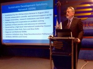 Además, sostuvo que la red que dirige fue establecida por el secretario general de las Naciones Unidas, Ban Ki-moon, en agosto del 2012, con la idea de movilizar científicos y expertos para proveer apoyo técnico y científico sobre desarrollo sostenible, a la Organización de Naciones Unidas, a universidades y otras entidades.