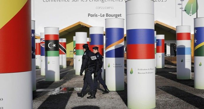 Los efectivos de seguridad fuertemente armados eran visibles casi en todas partes en el centro Le Bourget, en tanto que entre 200 y 300 personas infringieron la prohibición nacional contra las protestas, implantada dentro del estado de emergencia que Francia decretó por la muerte de 130 víctimas en los atentados extremistas en París.