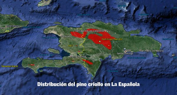 Es la especie de conífera predominante en los bosques de la República Dominicana, en especial la Coordillera Central y Sierra de Bahoruco. En elevaciones medias (850 a 2,100 metros sobre el nivel del mar -msnm-) se puede encontrar mezclado con bosque latifoliado y en alturas superiores a esta, se puede hallar como bosque puro, hasta la altura máxima de la isla, 3,087 msnm en el Pico Duarte.