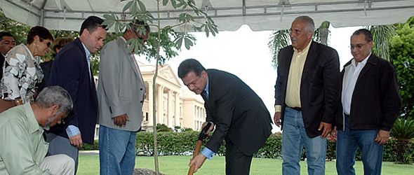 El presidente Leonel Fernández y el secretario de Estado de Medio Ambiente, Jaime David Fernández Mirabal, plantaron el sábado una ceiba pentandra en los jardines del Palacio Nacional, con motivo de celebrarse en mayo el Mes de del Árbol.