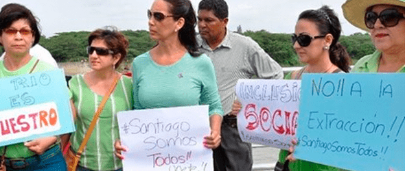Encabezados por el presidente de la Sociedad Ecológica del Cibao (Soeci) Andrés Blanco, y del consejal del Partido de Acción Liberal (Pal), Domingo Ureña, los protestantes permanecieron en el sitio toda la mañana con pancartas, con las que reclamaban el cese de dichos trabajos.