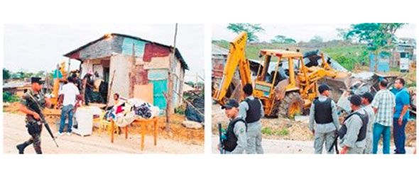 Decenas de policías y militares acordonaron el área desde esta madrugada, acompañados de alguaciles que ejecutaron el desalojo y destrucción de las viviendas con palas mecánicas.