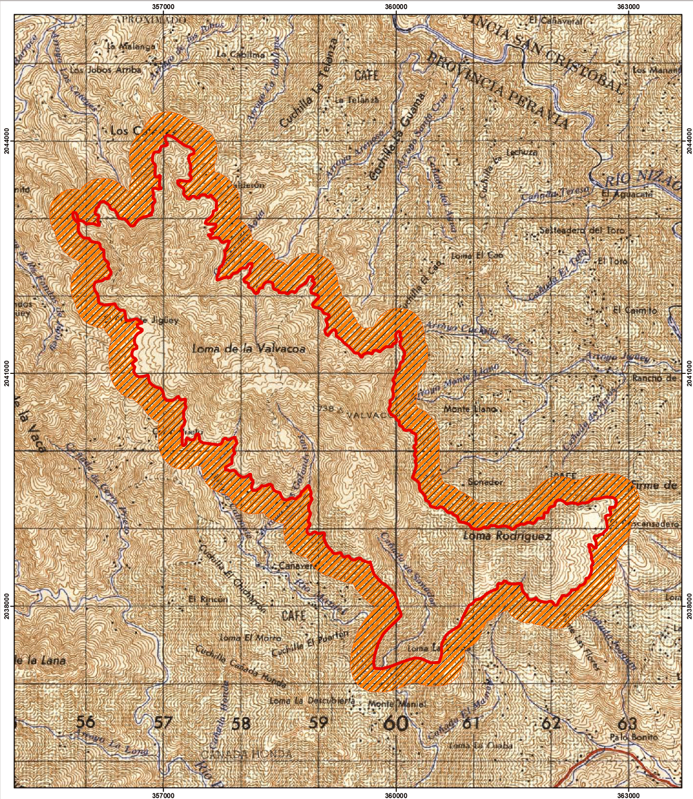 la divisoria topográfica entre el río Maniel y la cañada Sonador hasta su