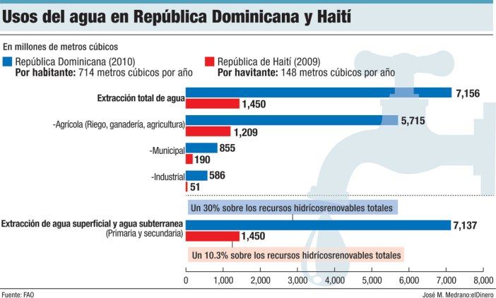 República Dominicana, en cambio, contaba con 2,207 metros cúbicos por persona por año, en su territorio de 48,442 kilómetros cuadrados, con 10.2 millones de habitantes.