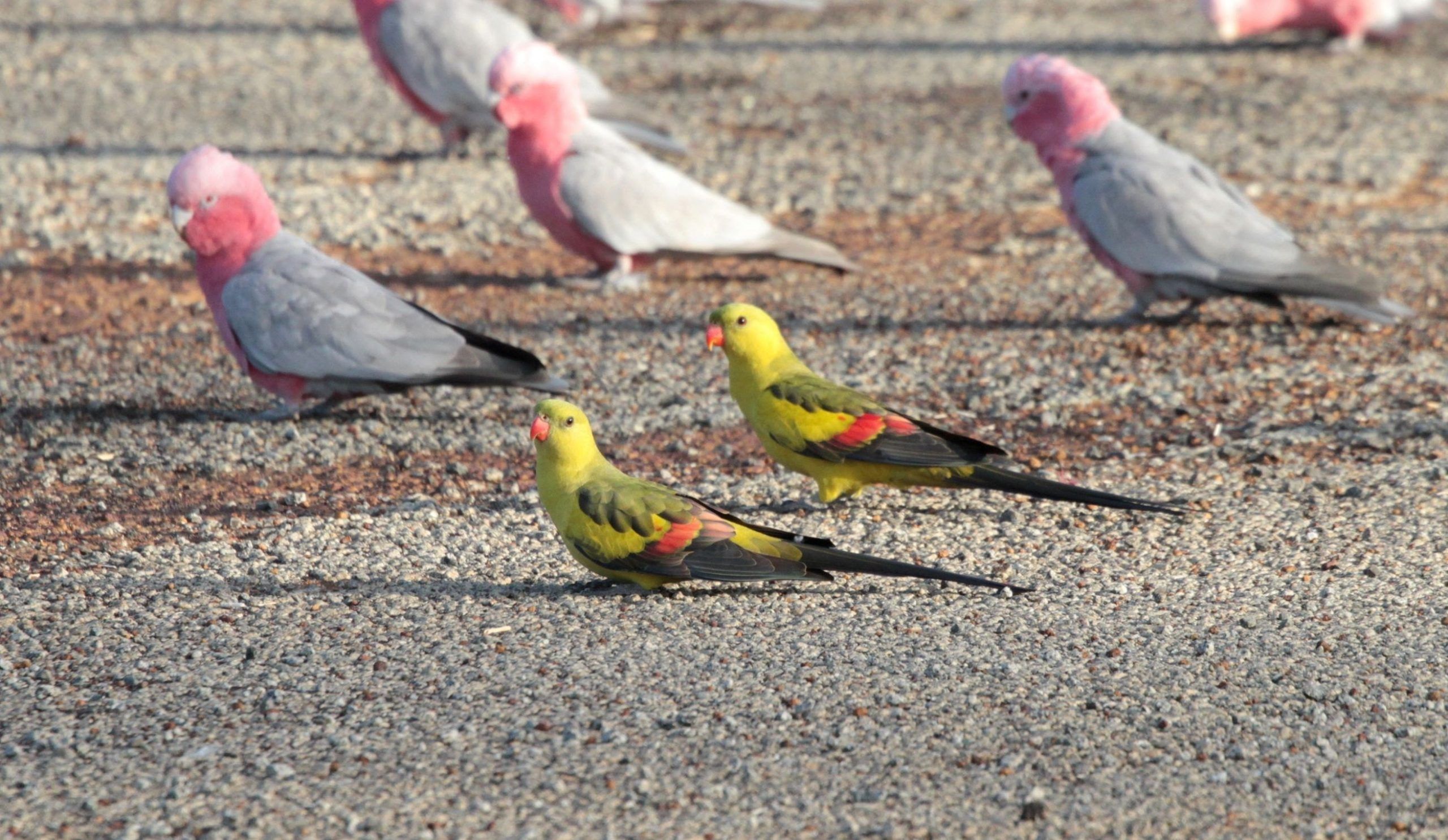 Perico regentes y Galahs. Foto: Dr. Corey T. Callaghan