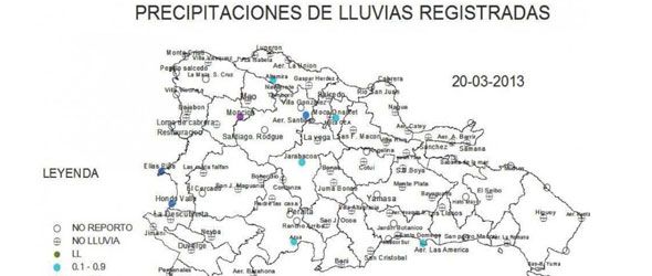 Los reportes de ese mismo día de la Corporación Dominicana de Empresas Eléctricas Estatales (CDEEE) registraron un ligero descenso en su nivel la presa de Aguacate y los contras embalses de Barias y Monción, por lo que están en estado de precaución.