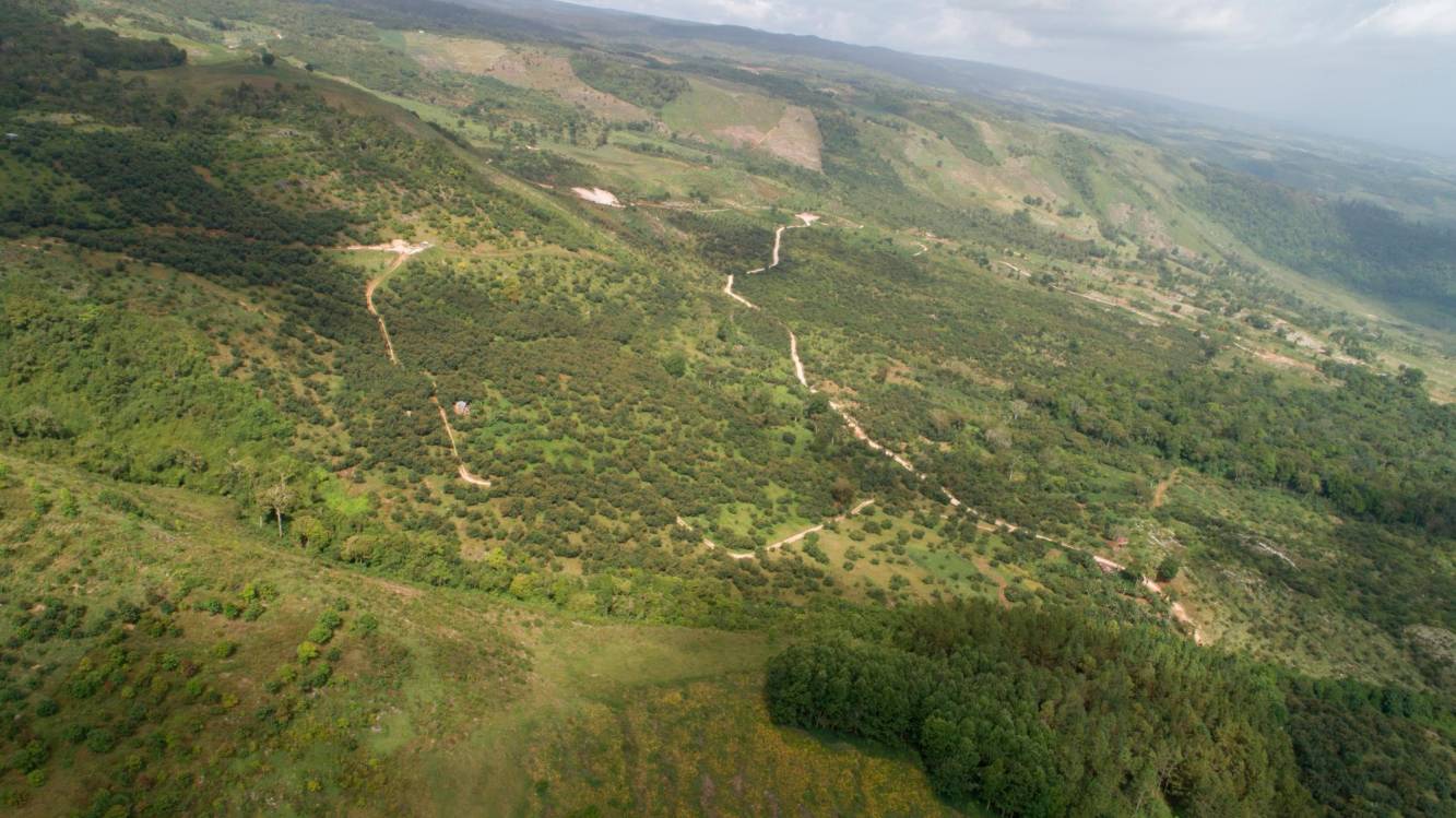 Esta finca, dividida en tres terrenos que superan las 200 hectáreas (3,276 tareas), está en más de un 50% dentro del área protegida. Cientos de árboles de aguacate hass de exportación han ido sustituyendo tareas donde se produjo por décadas productos de ciclo corto, como papa, cebolla, zanahoria, entre otros.