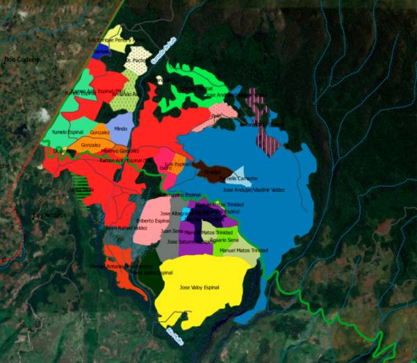 En el siguiente mapa Grupo Jaragua muestra un mapa de los empresarios agrícolas dentro del parque y la zona de amortiguamiento. Toda esta zona es parte de la cuenca del río Mulito. La línea verde defina el parque hacia arriba.