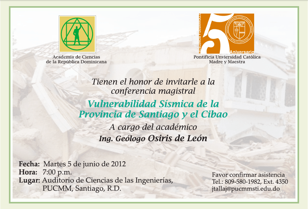 Vulnerabilidad Sísmica de la Provincia de Santiago y el Cibao junio 4, 2012 :: Asi Andamos 2012-06-04 Redaccion Compartir tweet